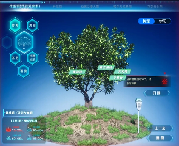 ?????? 运用数字孪生技术融合杨梅科学化生产,利用3D建模、全景拍摄技术和神经网络、大数据等技术结合,搭建杨梅“孪生”一棵树。通过孪生一棵树将数字模型与经验数据进行匹配、孪生模型与应用培训进行匹配、物联感知与技术指导进行匹配、业务服务与科学管理进行匹配,结合“e兰茗果”掌上应用,实时指导梅农剪枝、除草、打药、养护等农事行为。
