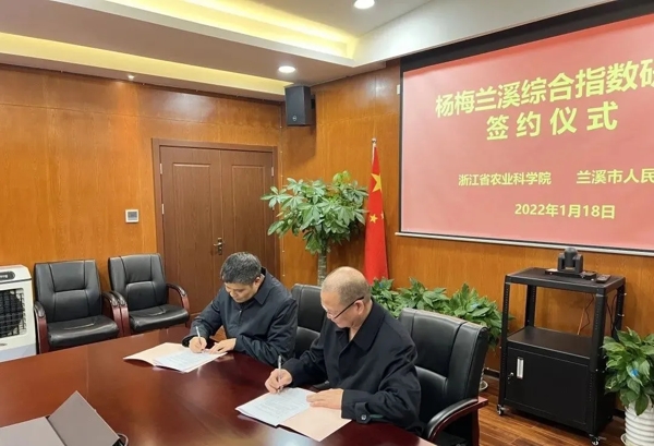 ?????? 省农科院副院长戚行江与兰溪市人民政府副市长陈玉祥签订《签订杨梅兰溪综合指数研究协议》,共同加快建立兰溪杨梅综合指数的评价体系,推动杨梅产业数字化发展、智能化管理。