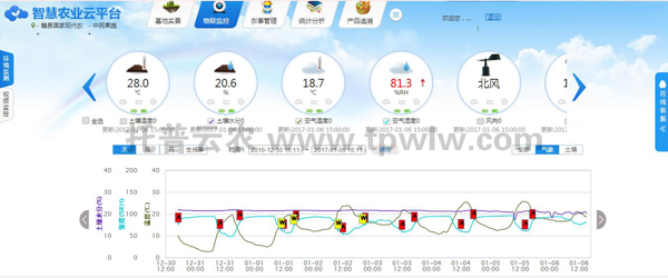 ?????? 依托托普云农无线墒情监测平台,接入空气温度、空气湿度、土壤温度、土壤水分、光照、CO2、叶面温度、茎秆微变化、温室小管家等传感设备,即可精确采集环境信息和植物生理数据,采集数据实时上传至托普智慧农业云平台。