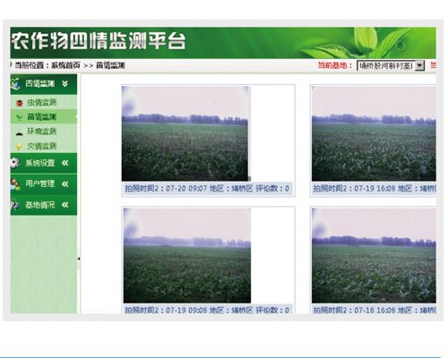 由于气候对当地农业生产的影响较为强烈,为提升农业防灾抗灾能力,托普云农着重搭建了农业“四情”(墒情、苗情、虫情、灾情)监测预警系统。托普云农农业“四情”监测预警系统以先进的无线传感器、物联网、云平台、大数据以及互联网等信息技术为基础,由墒情传感器、苗情灾情摄像机、虫情测报灯、网络数字摄像机、作物生理生态监测仪以及预警预报系统、专家系统、信息管理平台组成。通过用户通过Web、PC与移动客户端可以访问数据与系统管理功能。对作物实时远程监测与诊断,提供智能化、自动化管理决策,是农业技术人员的“千里眼”和“听诊器”。目前系统已得到较好应用,可实时掌控示范区的(玉米、小麦)种植期间的“四情”信息、秸秆焚烧信息。据从业人员小张介绍:“夏刘寨基地自引进托普云农的“四情”监测系统以来,小麦和玉米的种植变得更加省时省力。以前为了掌握作物的综合生长状况,需要田间地头到处跑,费时费力不说,仅凭眼睛观察得来的信息还难保准确。而如今利用托普云农“四情”监测系统,坐在办公室里就能够全方位地掌握农作物生长情况、气象信息和虫害情况,所掌握的信息不仅准确而且可以及时采取防治措施。”