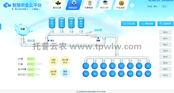 宁夏利通区农技中心于2016年引进了托普云农水肥一体化智能监控系统,整个系统可根据田间传感器监测的土壤水分、作物种类的需肥规律,设置周期性水肥计划实施轮灌。施肥机按照用户设定的配方、灌溉过程参数自动控制灌溉量、吸肥量、肥液浓度、酸碱度等参数,管理人员只要通过电脑或手机APP就可进行远程智能化管理,保障滴灌系统高效运行。实现对灌溉、施肥的定时、定量控制,从而改善土壤环境,提高水肥利用率,实现节水节肥,进一步节省人力、物力和财力,是节水农业的示范基地。