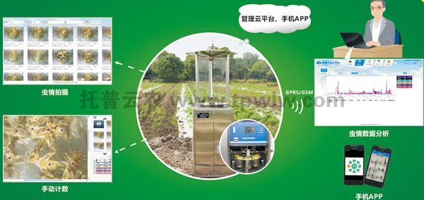 室外智能虫情测报系统,科学预警茶虫灾害就茶园中常出现的虫害问题,实现虫情测报,在茶园布控了虫情测报灯。虫情测报系统可远程查看病虫害情况,并及时链接专家系统进行预警决策。