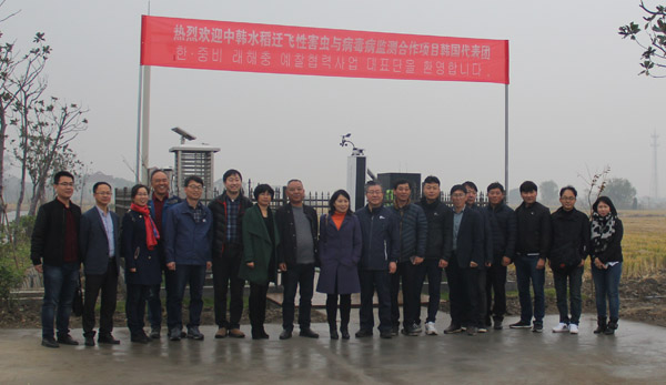 ?????? 11月底,韩国农村振兴厅代表团一行来到红菱村参观考察浙江省水稻迁飞性害虫智能监测网(嘉善)虫情监测点??疾焱挪喂哿送衅赵婆┲腔坌统媲椴獗ㄏ低?、性诱虫情测报系统、生态远程实时监控系统等,对智能监测点给予了高度肯定,表示人工智能正在颠覆他们的认知。托普云农副总经理朱旭华(左二)为考察团一行详细介绍了水稻病虫害绿色防控设备