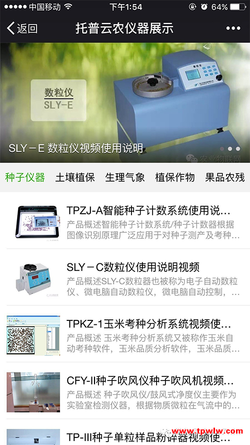 - 仪器使用不发愁,托普云农新推查看仪器操作视频功能!发表日期:2016-06-22 来源:托普云农 浏览次数:3904次