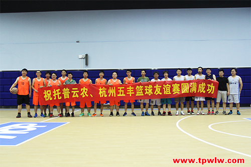 - 托普云农携手杭州五丰举办篮球友谊赛发表日期:2016-07-12 来源:托普云农 浏览次数:3697次7日下午由浙江托普云农科技股份有限公司(以下简称“托普云农”)同杭州五丰联合肉类有限公司(以下简称“杭州五丰”)联合举办的篮球友谊赛圆满划上了句号。此次友谊篮球赛在中国(杭州)智慧信息产业园的篮球场内举行,最终托普云农以83:64,取得了比赛胜利。