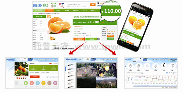 春秋农庄还利用物联网、互联网、电子商务等技术,发展订单农业,与生鲜电商生态系统进行对接。春秋农庄在生鲜电商生态系统上,通过托普农业物联网系统建立脐橙质量安全溯源档案,向消费者全方位地展示脐橙的生长环境、农事管理(用肥用药)、采摘等环节、为消费者提供真实可靠的产品信息,使之购买放心。