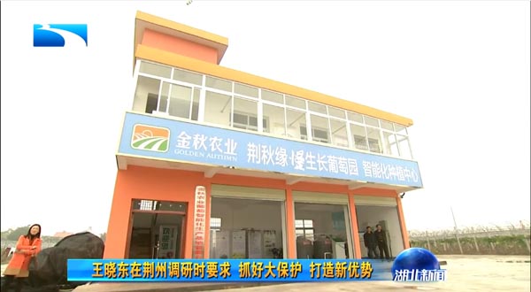 湖北省委副书记、代省长王晓东在荆州市市委书记李新华、市长杨智等领导陪同下莅临金秋农业智能化葡萄示范基地调研现代农业发展情况。饶有兴趣的参观了"智能化中心"水肥一体化设施,了解托普云农水肥一体化的精准生产过程。