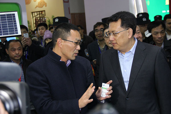 本届展会“互联网+”成托普云农展区亮点,吸引了省领导的目光及浙江卫视的关注。省委副书记袁家军、省人大常委会副主任程渭山、副省长孙景淼等领导在工作人员的陪同下参观了托普云农展区。托普云农董事长陈渝阳向袁家军副书记一行介绍了公司在物联网方面取得的阶段性进展和研发成果,结合现场展示的植保信息化系统,向袁家军副书记一行演示了智能农业仪器是如何“+”互联网技术在全天候无人值守的情况下实现“四情”监测的。直接展现了互联网产业与农业产业融合发展促进传统农业转型升级的发展现状。