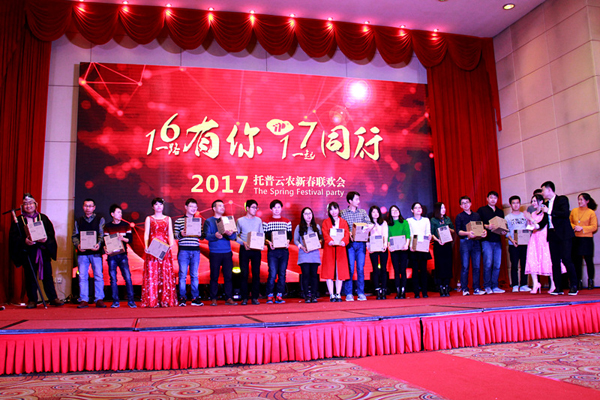 1月19日,托普云农2016年度总结表彰大会暨2017年新春联欢会,在杭州海外海·纳川大酒店成功举办!300余名托普家人欢聚一堂,共同回顾这一年的收获与不足,规划展望新一年,以期来年拿出更亮眼的成绩单。