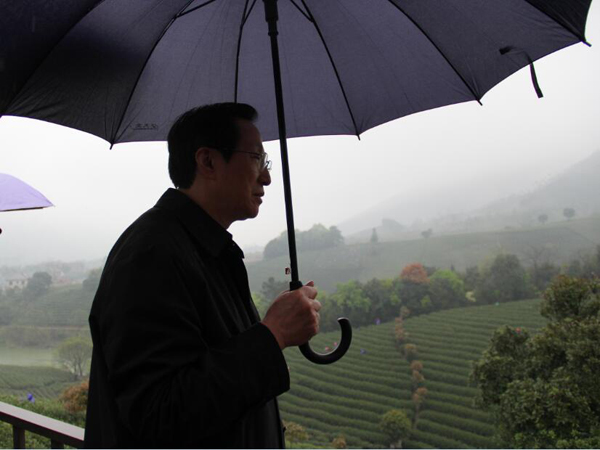 韩部长冒雨参观安吉白茶国家级标准化示范园