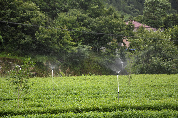 物联网施工人员介绍,该物联网由监测网和灌溉网两大系统组成。监测网由环境监测系统、实时监控球机20个、网络红外球机7个及服务平台组成,覆盖冲口、铁滩、大山、张畈、水畈、扇铺等1000余亩茶园基地及铁滩茶叶交易市场、大山茶厂。灌溉网由茶园水肥一体化灌溉系统和远程控制系统组成,安装在水畈村国家茶叶标准园核心基地,覆盖崔冲、大塘、大屋3个村民组50余户农户茶园。