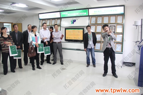图为:考察团听取托普仪器朱旭华副总经理汇报