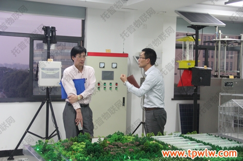 图为:托普仪器陈渝阳总经理在向支巨振处长介绍“智慧农业”