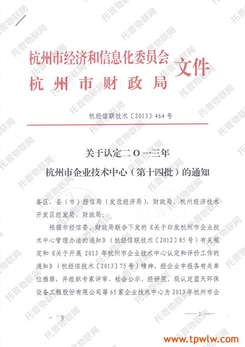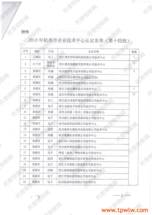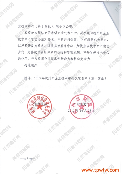 经企业申报各有关单位推荐,并组织专家评审、社会公示、经杭州市经信委和财政局研究认定浙江托普仪器有限公司等65家企业技术中心为2013年杭州市企业技术中心(第十四批)。