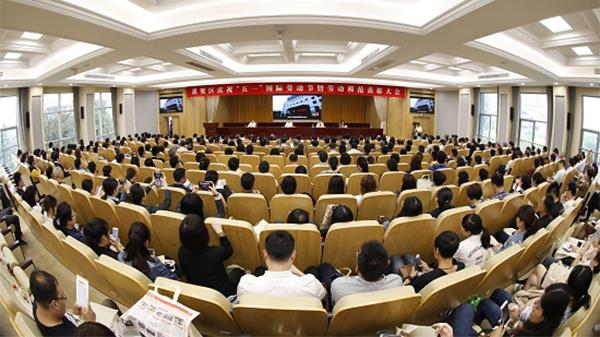 4月23日上午,为表彰模范人物和先进集体的突出贡献,树立榜样示范作用,拱墅区召开了庆祝“五一”国际劳动节暨劳动模范表彰大会,区领导、各街道(园区)、区直属单位主要负责人,2019年拱墅区劳动模范、模范集体代表、拱墅工匠,基层工会干部和职工代表等360余人出席大会。