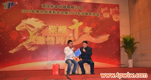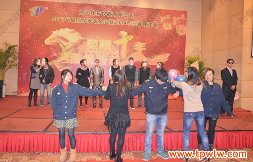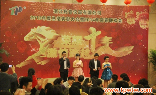 - “荣耀十年、激情跨越”之托普仪器2013年年终晚会发表日期:2014-01-27 来源:托普云农 浏览次数:3831次飞雪送蛇归,骏马迎春来。2014年1月24日六点整,在一片欢乐祥和的气氛里,“荣耀十年、激情跨越”之托普仪器2013年年终晚会缓缓拉开序幕。托普仪器260余人的大家庭齐聚一堂,庆祝托普十年华诞,庆祝一年的工作成果,庆祝除旧迎新。晚会伊始,托普仪器陈渝阳总经理上台为本次晚会致开幕词,为即将到来的马年向所有托普家人致以新春的问候。