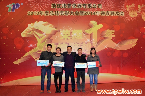 当一张张PPT、一段段视频在会场的布幕上放映的时候,时光见证了许多老员工在托普仪器的成长。公司为了答谢他们的辛苦付出,特别授予五年以上员工授予“托普十年之皇冠奖”;三年以上员工“托普十年之钻石奖”;在岗位上时间长久且做出特别贡献的员工授予“托普十年之主人翁奖”。