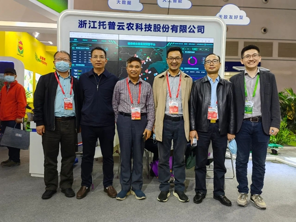 西藏农业技术推广服务中心陈俐站长(左二)、山西植保植检总站杨军站长(左三)和张武云副站长(右一)一行莅临托普云农展位
