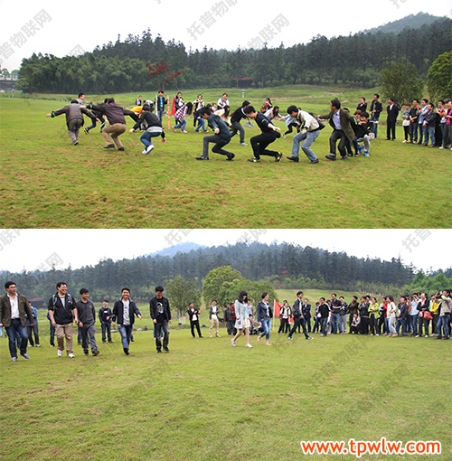 上午的拓展活动在园中翠绿色的大草坪上展开,托普仪器近300人的庞大队伍被分成了10个小组进行团体比赛。两场比赛分别为“快乐抱抱爆”和“穿越生死网”,虽然游戏的名字和比赛的方式不同,但同样都是关于速度与时间的较量。