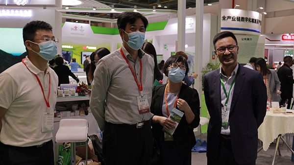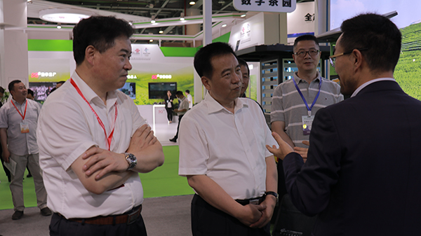 全国农业技术推广服务中心主任魏启文(左二)、园艺处处长周泽宇(左一)、副处长冷杨(右一)参观托普云农展位