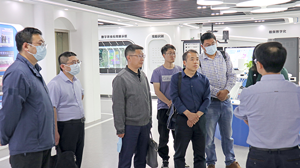 在托普云农的数字三农展厅中,曾大力院长一行听取了朱旭华院长关于公司发展历程、科研技术能力、智能农机装备以及数字乡村建设成果等专题汇报,并对托普云农在智慧农业领域领先的技术研发和落地推广能力高度肯定。