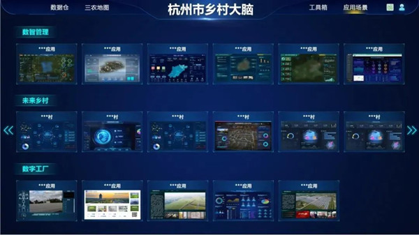 “杭州乡村大脑”以浙江乡村大脑全省贯通的要求为基准,围绕“以用促建、共建共享”的原则,建成“省市县镇村”五级贯通的杭州市三农数据资源和业务应用统一管理体系,汇聚形成数字乡村数据库(包括数据库、图层库和应用库),实现乡村数据统一管理、应用统一管理、能力组件统一管理、标准规范统一管理。