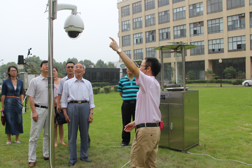 7月5日,在浙江省农业厅相关领导的陪同下,调研组莅临托普仪器,一下车便在公司一楼翠绿的草坪上看到了虫情测报灯、杀虫灯、土壤墒情综合检测系统、农林小型气象站、360度视频监控球机五种基层农技推广体系检测中不可或缺的仪器设备。为了近距离观察、获取数据与测试仪器性能,一楼草坪成了最佳的室外监测点,也是托普仪器研发中心人员最易接触的天然实验室。