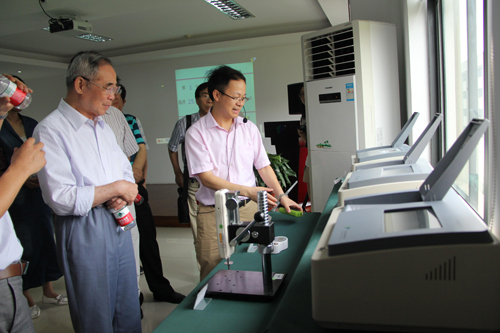 仪器设备展览室,陈列着植物生理、农业气象、种子检验、农残及果品、土壤检测、植保、粮油检测七大类一百多种农业仪器设备。此外,托普仪器农业信息化系统终端显示平台也在展示部分。通过近年来对研发力度的加大,托普仪器不断探索将基层仪器设备升级与信息化技术两相结合的方法,目前,托普仪器大部分仪器设备都可实现与农业信息化系统的互联,以期达到农业生产信息及时监测、视频录像全程监控、农机设备自动控制的效果,正确指导农事作业。图为:仪器设备展览室、实验室参观及调研