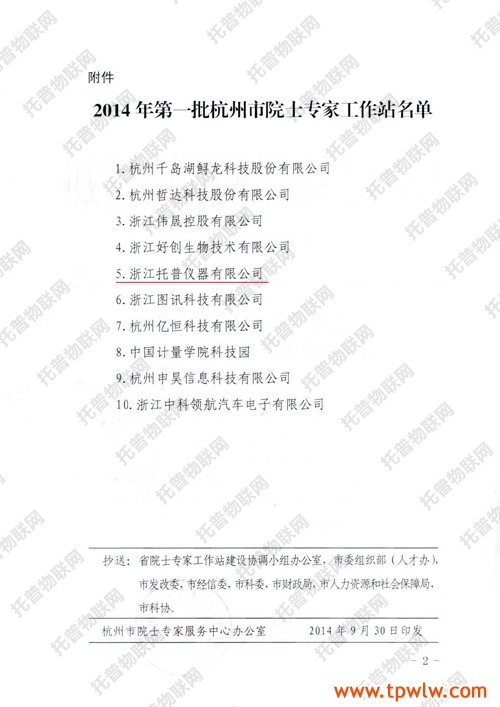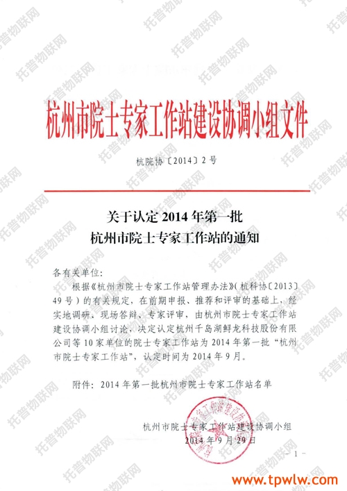 近日,《关于认定2014年第一批杭州市院士专家工作站的通知》颁发,认定托普仪器在内的10家单位院士专家工作站为2014年第一批杭州市院士专家工作站。