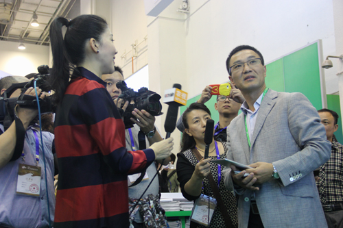 图为:媒体采访托普仪器陈渝阳总经理、朱旭华副总经理
