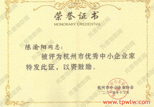 恭喜托普仪器陈渝阳董事长获得杭州市“中小企业优秀企业家”称号