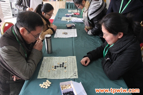 图为:象棋季军-徐艳兰(左)与选手-翁建峰(右)比拼