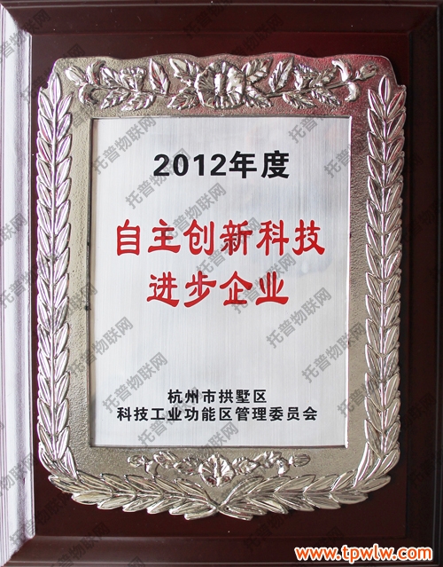 根据杭州市拱墅区科技工业功能区管委会研究决定,为了进一步引导企业自主创新,走新型工业化道路,加快发展高薪技术产业,不断优化产品结构,特授予托普仪器“自主创新科技进步企业”荣誉称号。