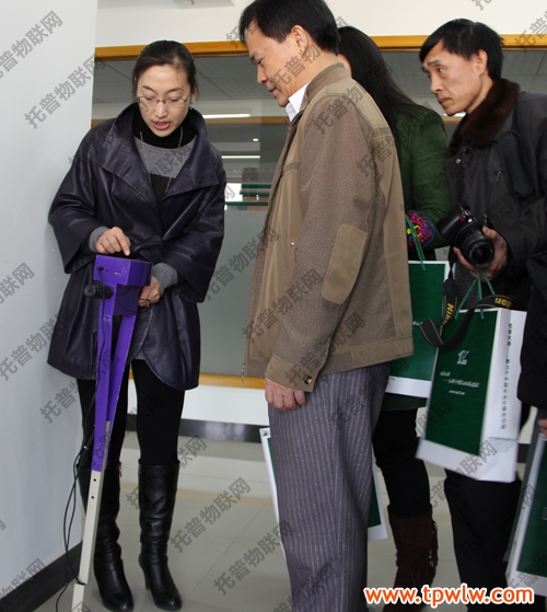 图为:托普仪器技术人员为参观者讲解物联网知识