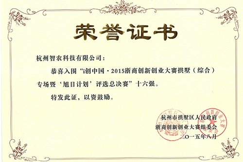 2015年8月5日,i创中国· 2015浙商创新创业大赛拱墅区专场暨“旭日计划”评选总决赛(以下简称“浙商创新创业大赛”)如期举行。杭州智农科技有限公司参与总决赛,并成功跻身16强之列。