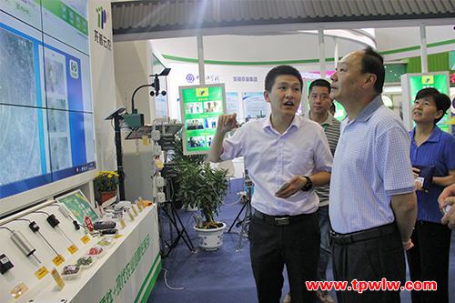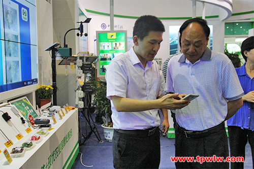 会议期间,安徽省政协副主席兼省政府秘书长邵国荷先生、安徽农委赵颖南总农艺师一行莅临8号馆电子商务及物联网展区观摩托普云农自主研发生产的农业物联网综合服务平台。重点询问了托普云农所展出的以色列作物本体传感器和植物营养测定仪等系统设备的相关情况。陈曦经理为其一一介绍。
