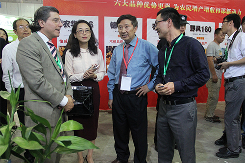 农业部种子局局长张延秋、副局长马淑萍一行还带领前来参加中国-阿根廷种业交流峰会的阿根廷代表团参观了托普云农展区。阿根廷国家种子研究所董事会主席拉威诺勒 莱英姆多农业工程师仔细观摩了公司所展出的种子检验仪器和系统,并与陈渝阳总经理进行交流。