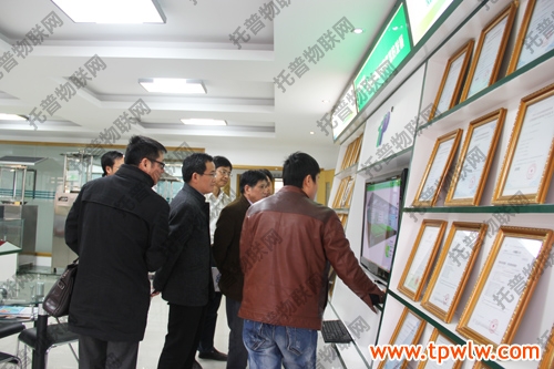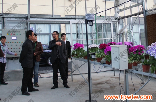 图为:托普仪器技术人员为吴处长等领导演示物联网系统的室内操作