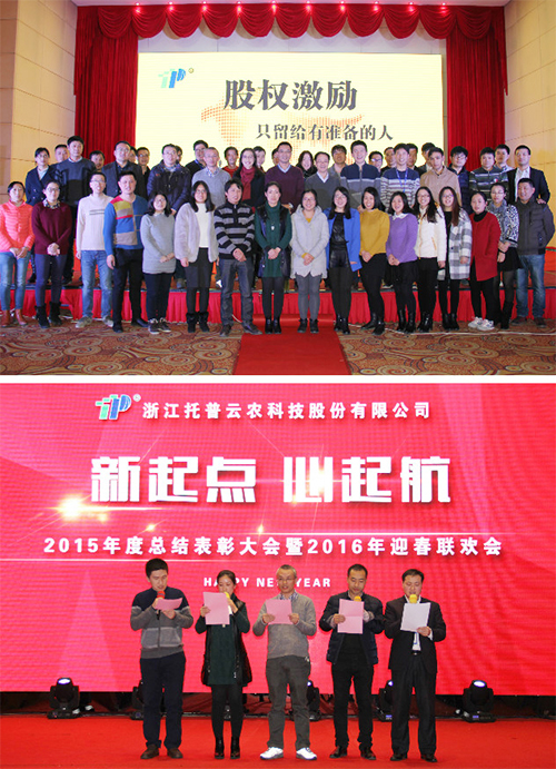 本届年会由行政人事总监主持,公司副总朱旭华先生向全体托普人做了公司2015年总结报告,并分析这一年成绩和存在的不足。陈渝阳总经理以中央一号文件为驻点,全面分析了中国现代农业的发展趋势,并对公司目前所处的宏观环境进行了深入的分析,并公布公司2016年的战略发展规划。表示企业发展离不开优秀人才,其发展成果也终将惠及广大托普人,并重申了公司内部优秀人才的股权激励机制,让更多优秀的事业合伙人能够分享到公司的发展成果。期间公布了2015年度优秀员工并对其表示感谢和祝贺!