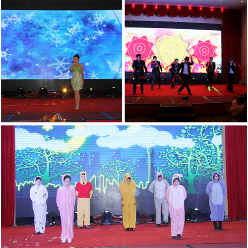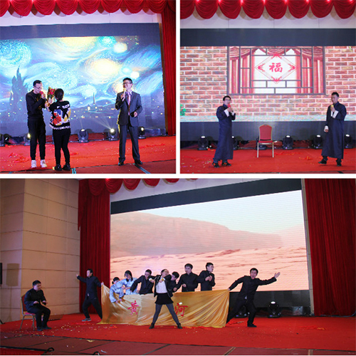 精彩纷呈的“新故事,新起点”2016新春年度盛典在四位支持人的深情开场中拉开序幕。热情欢乐《金狮送福》领先开演,为大家送来了新年的祝福;劲舞《说爱就爱》,激情火爆,乐观向上的精神风貌展现得淋漓尽致;研发团队的舞台剧《电影院那些事》演绎了公司研发人员丰富饱满的内心世界。一首《飘雪》,瞬间将我们就带入了纯情浪漫模式。古筝演奏,优雅悠扬;激情昂扬的《保卫黄河》将整个晚宴推向高潮;销售部老男人们的《群魔乱舞》让大家更是乐的开怀畅饮!期间的互动环节及欢乐大抽奖让全场氛围热烈而又充满期待,高潮迭起!