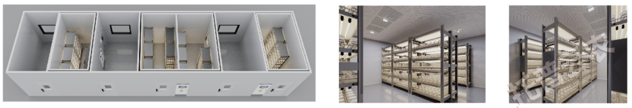通过室内环境模拟,研究林木生长全周期变化,根据用户栽培作物高度科学合理定制排布培养架或顶置光源