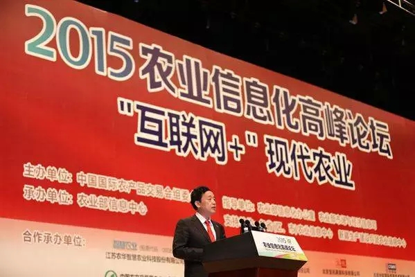大家下午好!这次以“互联网+”现代农业为主题的2015农业信息化高峰论坛,是第十三届中国国际农产品交易会组委会主办的重大活动,主要目的是学习贯彻十八届五中全会精神,共享实践经验,共谋发展思路,共商推进举措,合力推动“互联网+”现代农业加快发展,为农业农村经济实现“弯道超车”“跨越发展”提供新动力。参加本次论坛的人员,有的来自政府部门和科研教学单位,有的是涉农互联网企业的负责人,还有新闻媒体的记者朋友们,参加人员之多出乎预料,充分表明"互联网+"现代农业已经成为社会各界共同关心、共同参与的战略行动。刚才我听了杨副部长的演讲,他是这方面的专家,一会儿还有倪院士等专家的报告,在这里我代表农业部组委会向大家致以亲切的慰问,并表示衷心的感谢!下面,结合学习贯彻五中全会精神和国务院有关部署要求,我就如何推进"互联网+"现代农业加快发展谈几点认识和体会。